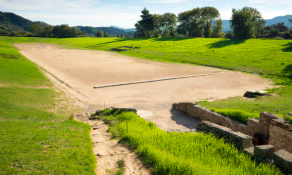 The Ancient Stadium of Olympia ← Previous Next → The Ancient Stadium of Olympia The stadium is 200 yards long and is estimated to have held nearly 40,000 spectators. Courtesy worldhistory.org Courtesy worldhistory.org