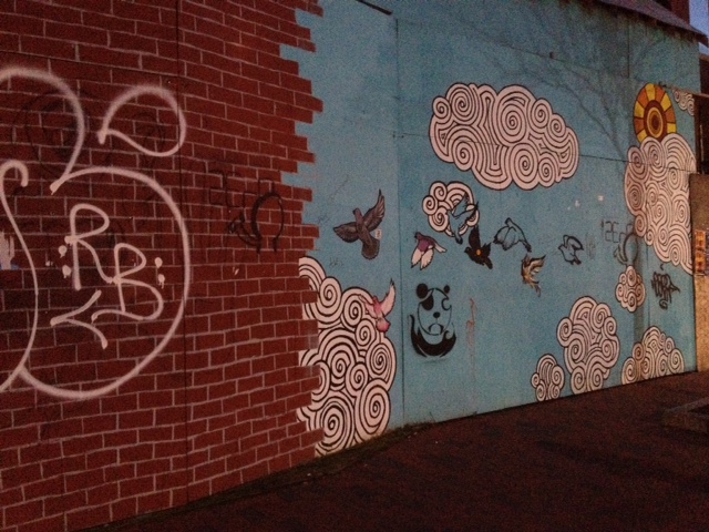 Perhaps this is why none of it was removed; it gives Congress vibrancy. In all the places where I found minimal graffiti, it had been removed because it must have detracted from the image of the neighborhood. An already run-down looking gas station does not need graffiti to further depreciate or strengthen its image. Here is Lynch’s idea of imageability. Assuming that graffiti is the product of an urge to express, and having found evidence of Portland’s attempts to erase tags, the illegible signatures are sliced off the end of the spectrum (among the ranks of careless tagging and vandalism) of what can be considered graffiti to push Portland’s image to the more “refined” end. Hailing from the suburbs of Philadelphia, I know that graffiti may be considered street art, but street art is not graffiti. Original graffiti is saturated with the punk DIY attitude, a rebellion carried out by unschooled artists against blank walls to establish an invasion of their presence. Portland is too small for pockets of these rebels to be visible. If the visible art mostly exists behind the glossy windows of MECA and within the numerous galleries, I would say that there is a noticeable polarization in Portland in terms of what visible art gets to stay and what is erased.