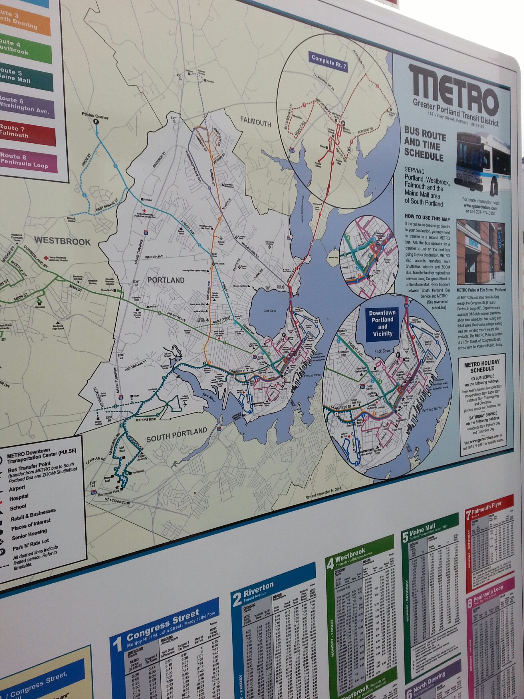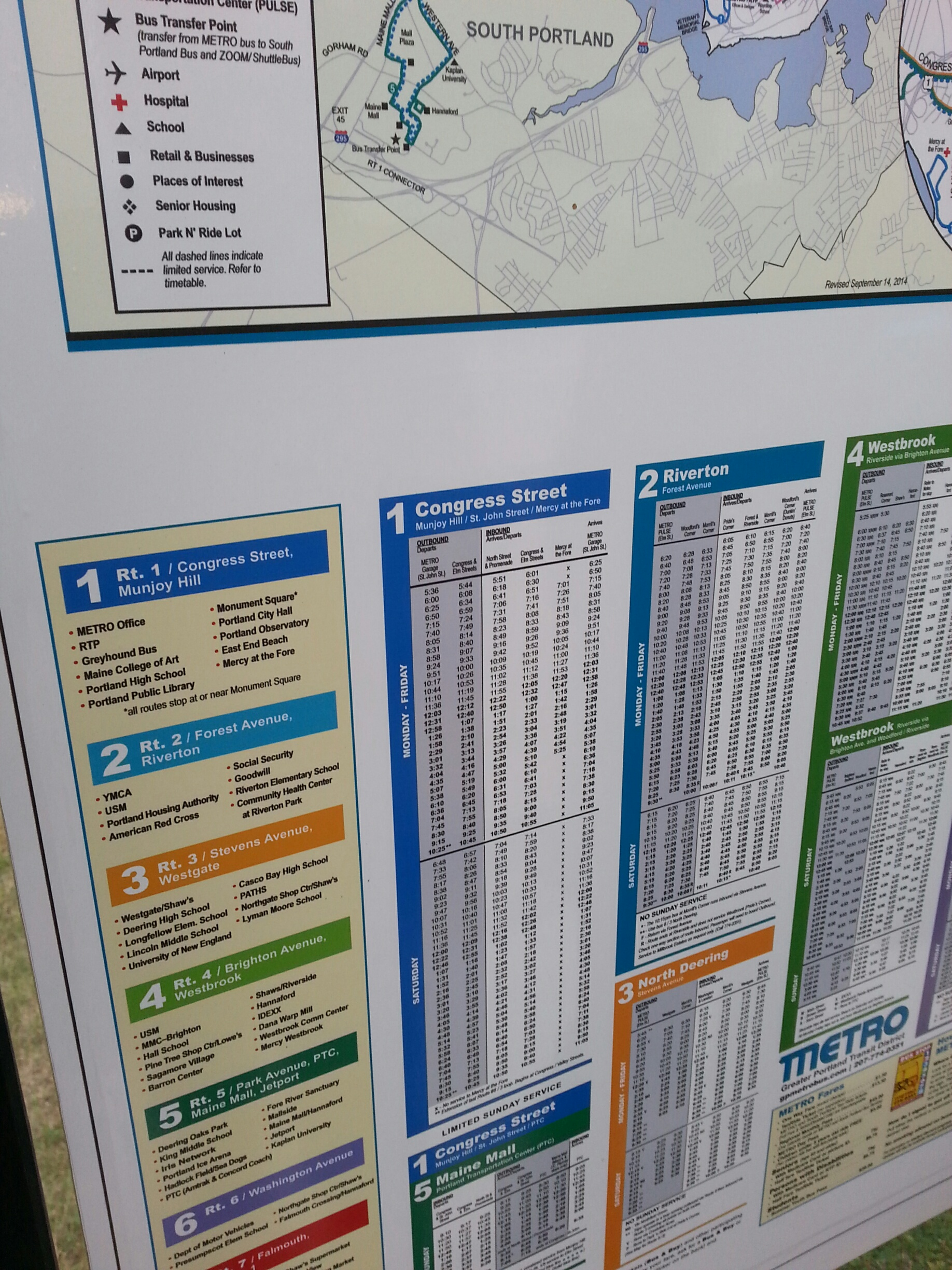 Do you think that certain routes were differently profitable? I wonder if the problem with the public transportation is that it is too spread out. Routes go to Falmouth many miles from the city center of Portland. If we could reroute those lines around the denser parts of the city, it is possible to make those lines more reliable and more profitable. If we could boost ridership in one section, it would be easier to expand the route if there are already dedicated riders than trying to improve the expansive and unreliable system that exists already. This would also help to reduce the amount of confusing signage.