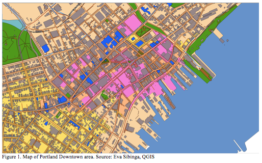 Map of Downtown Portland area. December 17, 2014 514 × 320 WalkPortland: Enhancing the Pedestrian Experience in Portland, ME Map of Downtown Portland area. Source: Eva Sibinga, QGIS.