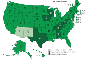 - American Indian: 52.9%, Asian: 93.0%, Black: 80.0%, Hispanic 78.3%, Pacific Islander: 75.0%, Two or More Races: 76.6%, White: 84.5%