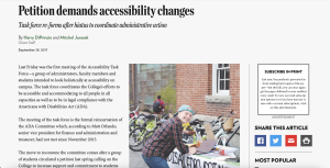 2. “Petition demands accessibility changes” (2017) By Harry DiPrinzio and Mitchel Jurasek
