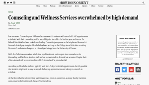 - “Counseling and Wellness Services overwhelmed by high demand” (2022) By Ayub Tahlil