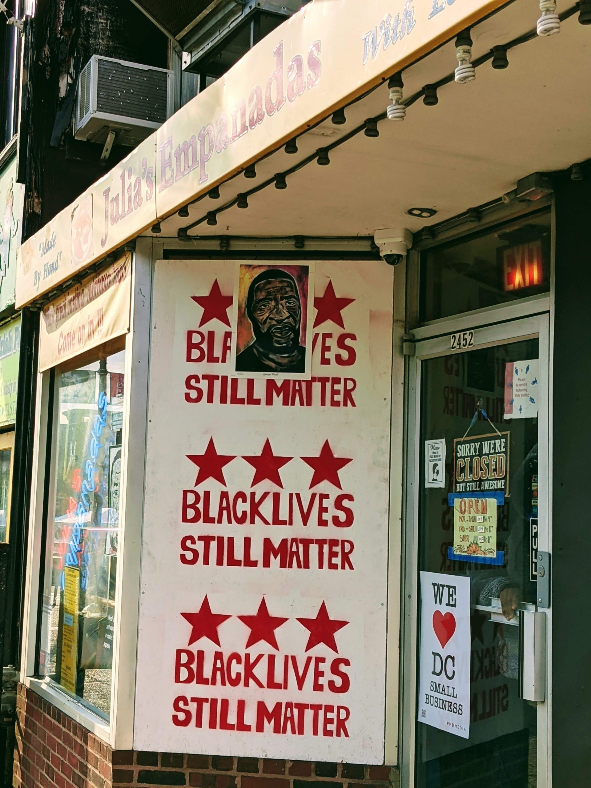 Taken predominantly in the Adams Morgan neighborhood of Washington DC, these pictures lay out the neighborhood’s sights on a blustery November morning. Visible messages supporting Black Lives Matter and racial justice strengthen and reinforce this neighborhood’s values. Despite the national divide over racial justice demonstrations, residents can look to their neighborhood and feel reassured that they live in a welcoming space that shares their concerns.